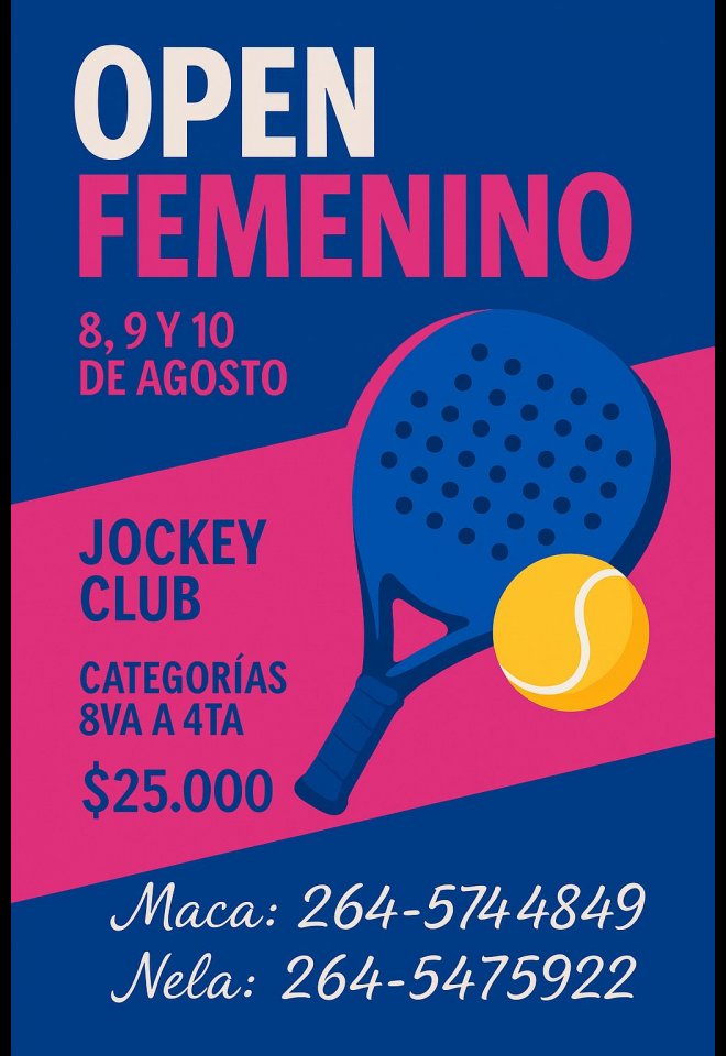 »» Evento: OPEN FEMENINO »» Localidad: San Juan »» Fechas: 08/08/2025 al 10/08/2025
